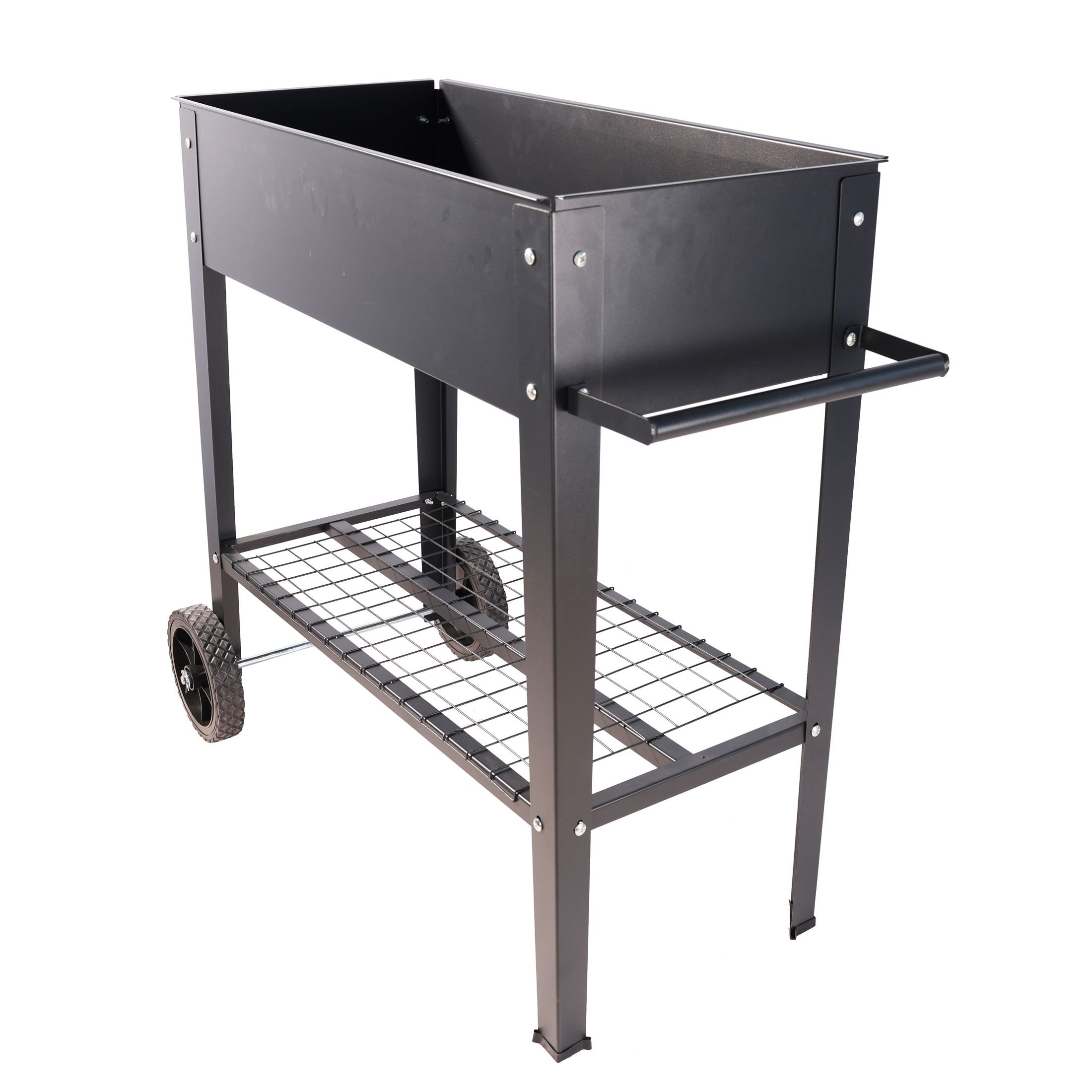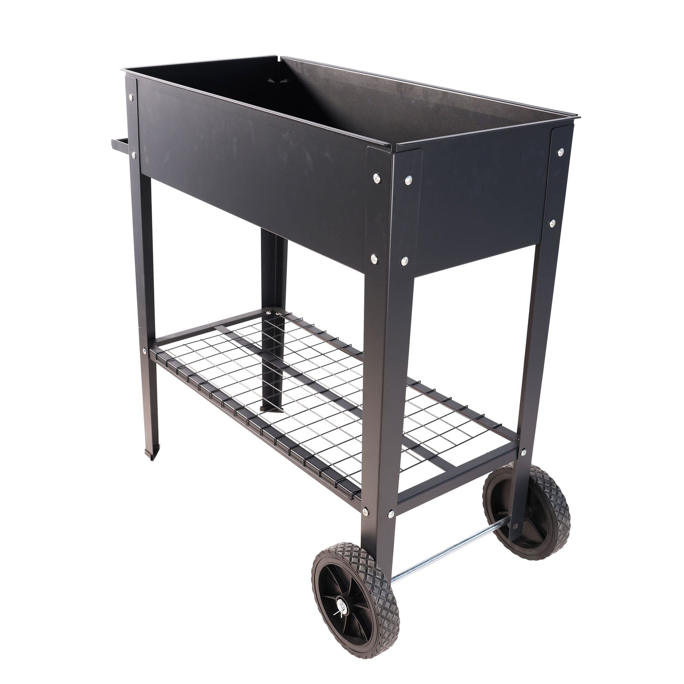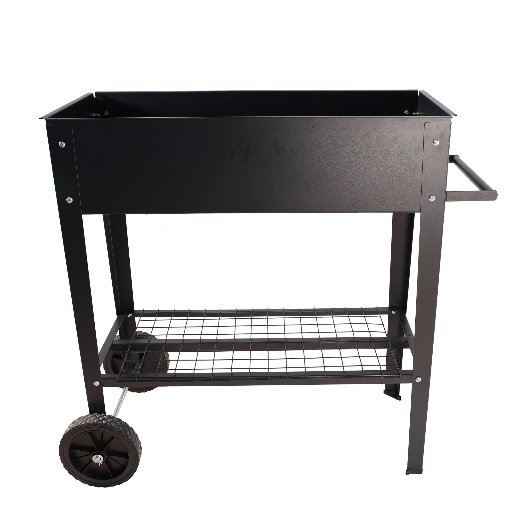 Ergonomic height at waist level design removes the need for bending or kneeling, preserving your back and knees, Equipped with 2 wheels and armrests, can be easily moved to any place after lifting the armrest. 4 high-strength metal legs, which can carry more than 200 pounds. With a storage shelf, you can store planting tools. The frame of the groove are designed with sealing edge and 4 curved corners can avoid hand cutting.