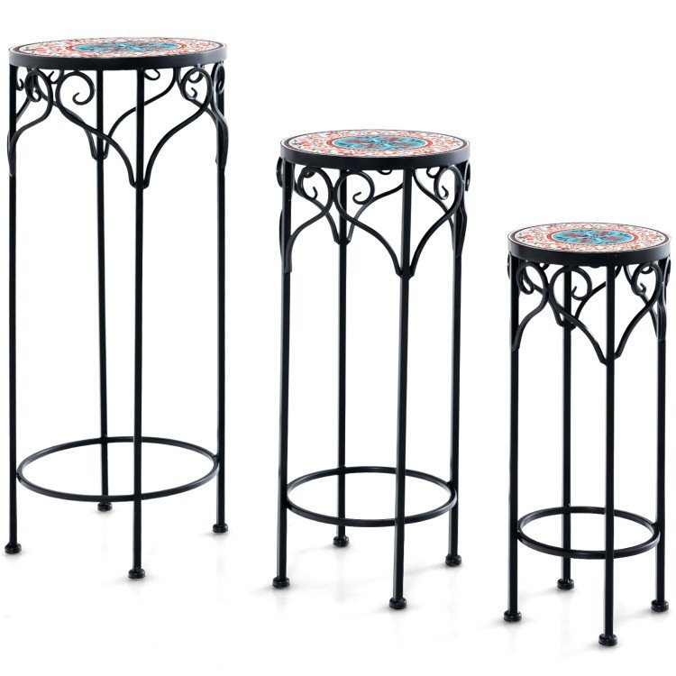 1.Elegant Plant Stand in 3 Sizes: The mosaic plant stand comes with 3 sizes: (Large) 12"x28", (Medium) 10"x23.5", (Small) 8"x19.5", offering various placement options. And exquisite decorative patterns on the top will make it an attention-grabbing focal point.