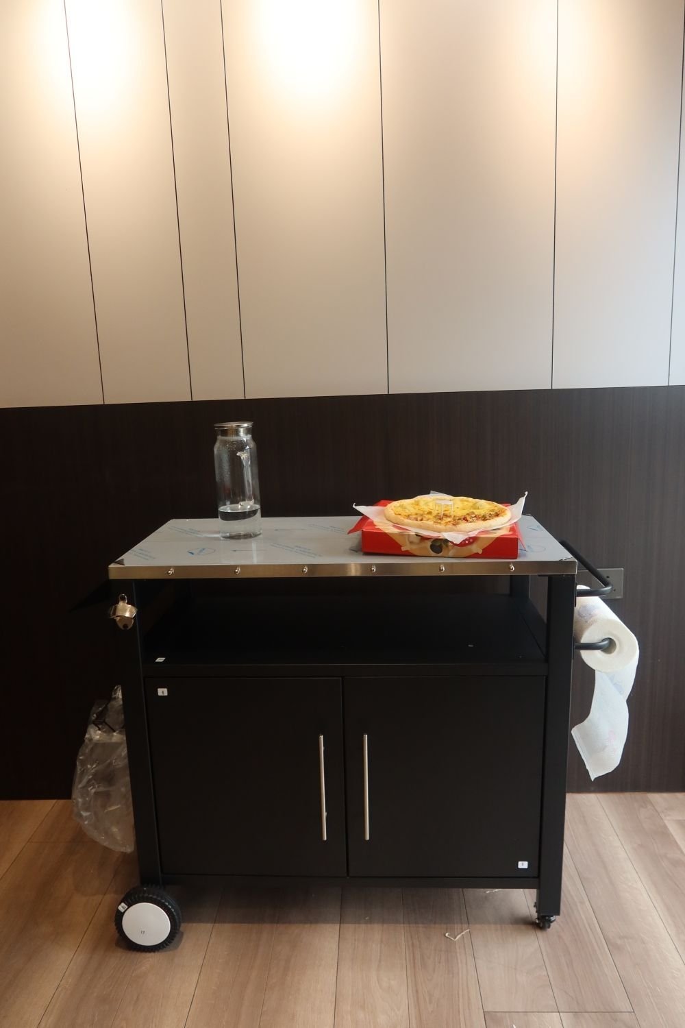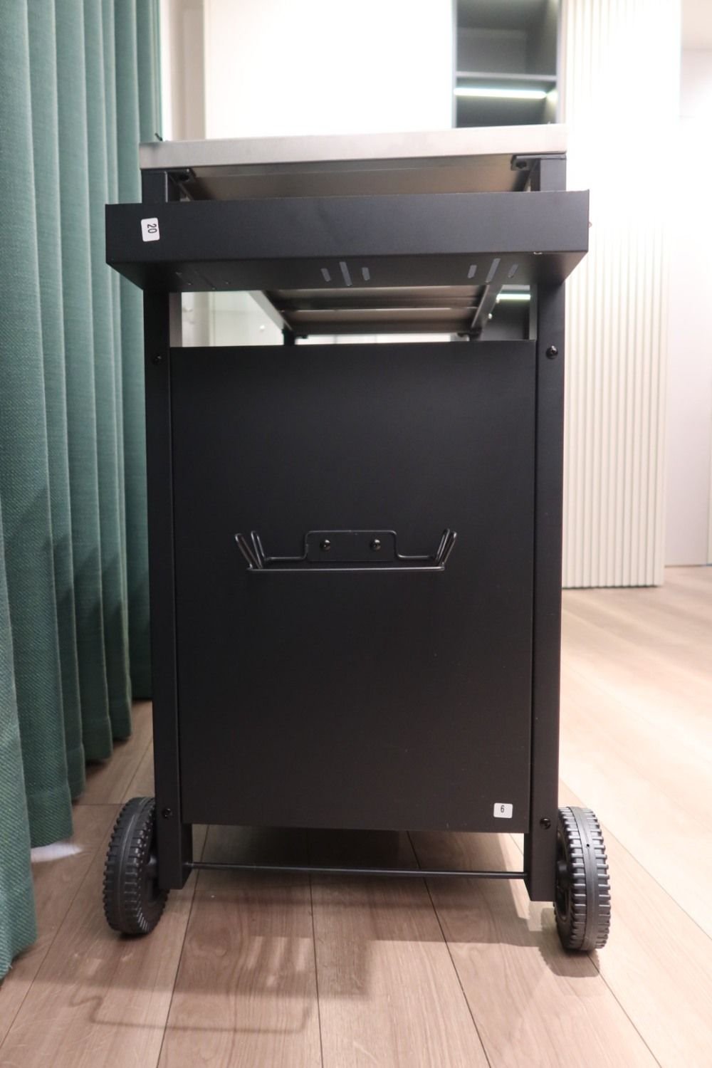 STURDY AND DURABLE MATERIALS - The grill cart features heavy-duty square tube legs and a stainless steel tabletop, which is very stable and durable. The stainless steel tabletop provides a safe work surface that is easy to clean and maintain. The full cabinet is designed with two doors, the right side to store barbecue fuel, including propane tanks, charcoal, or wood chips. There is a movable layer board inside the left side.This outdoor bar cart is an outdoor entertainment necessity.