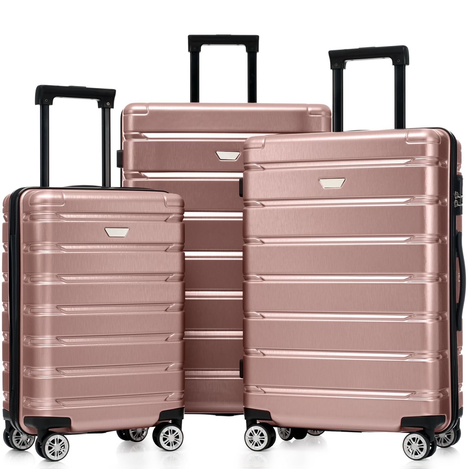Save Space: The suitcases in 3 sizes can be nested inside each other to save storage space. 20 inch: 13.8 x 8.9 x 21.3", weight: 5.95lb. 24 inch: 17.3 x 10 x 25.7", weight: 8.16lb. 28 inch: 19.5 x 11.3 x 29.4", weight: 9.7lb.
