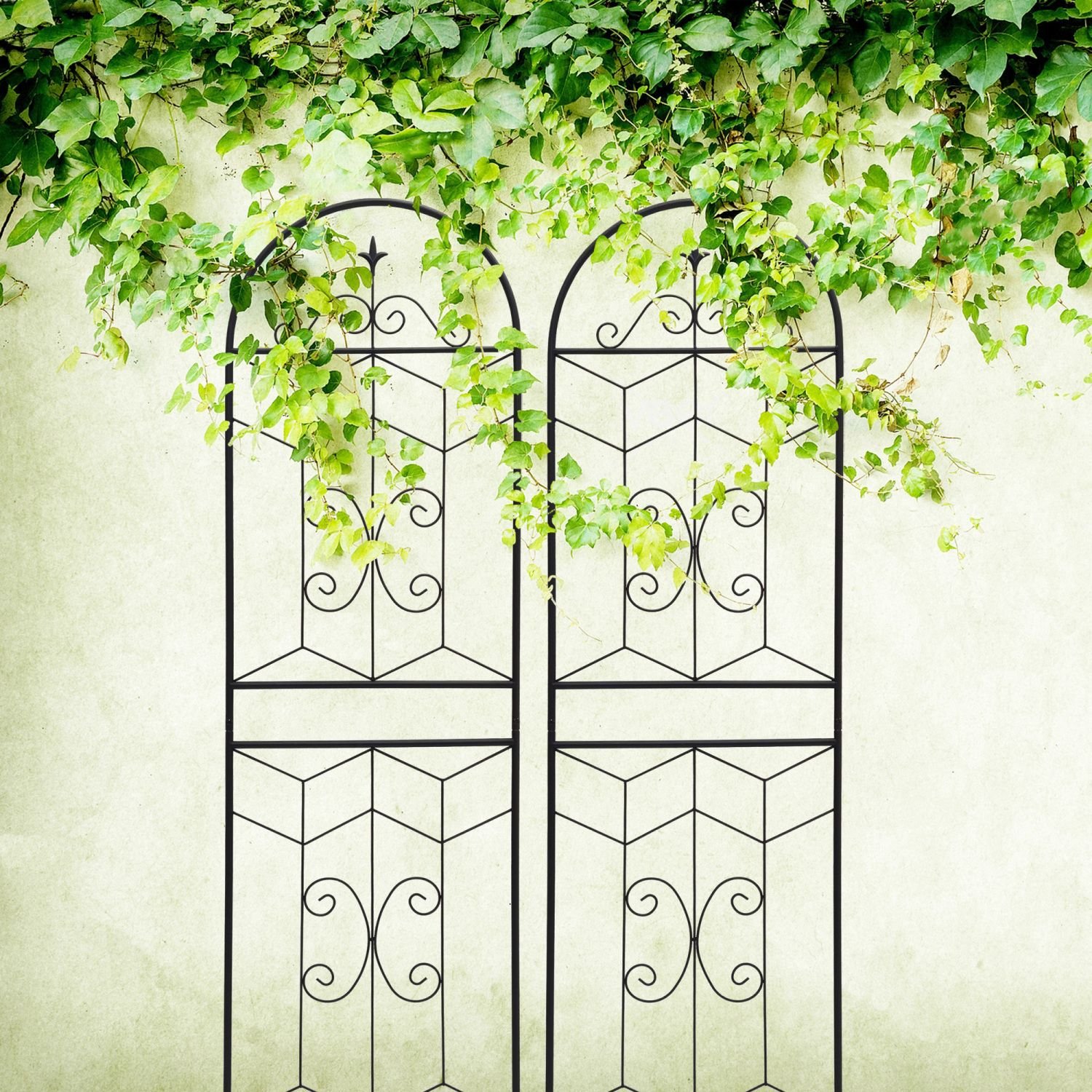 Multi-purpose: Great metal garden trellis for climbing plants, such as ivy vines, rose, morning glory, clematis, jasmine, grape, blackberry, cucumber, beans, peas, etc.